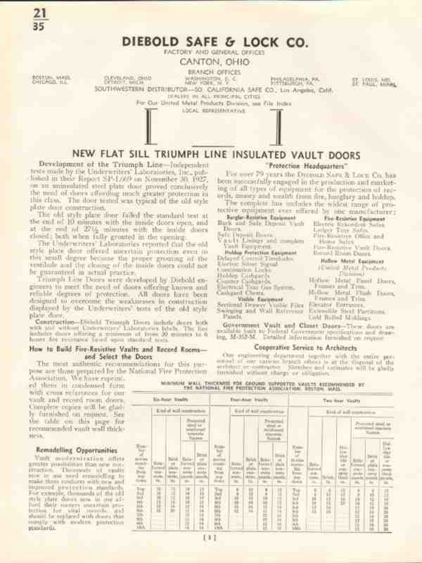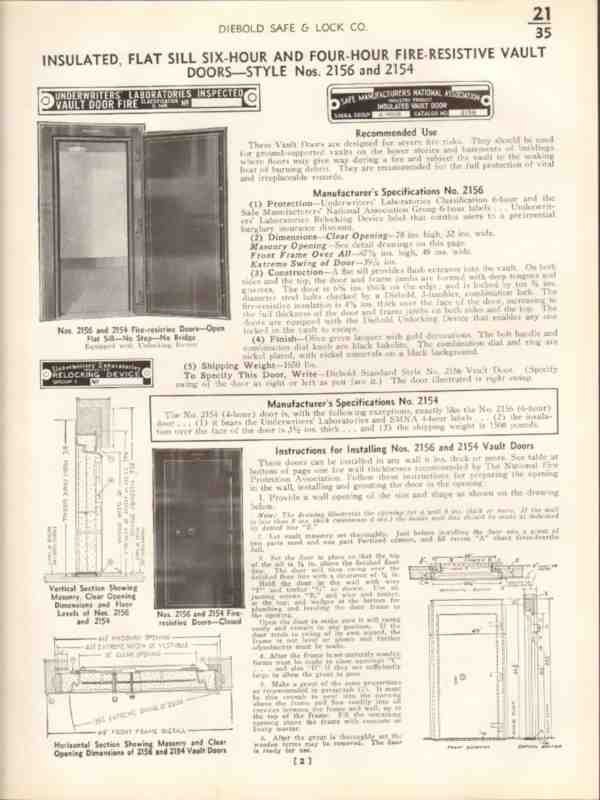 Diebold Safe Lock Company 1938 Vintage Catalog Doors Insulated Vault