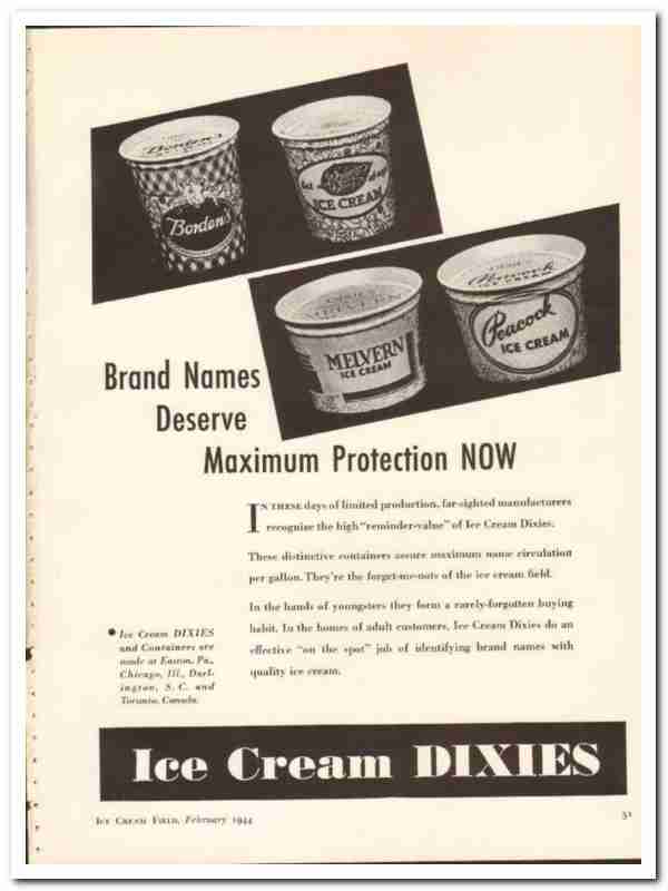 Dixie Cup Company 1944 vintage ad ice cream Brand Names Protection