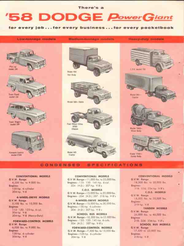 dodge 1958 new power giants 4-way leaders low priced trucks vintage ad