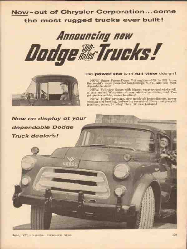 dodge 1955 chrysler corp super power-dome rugged trucks vintage ad