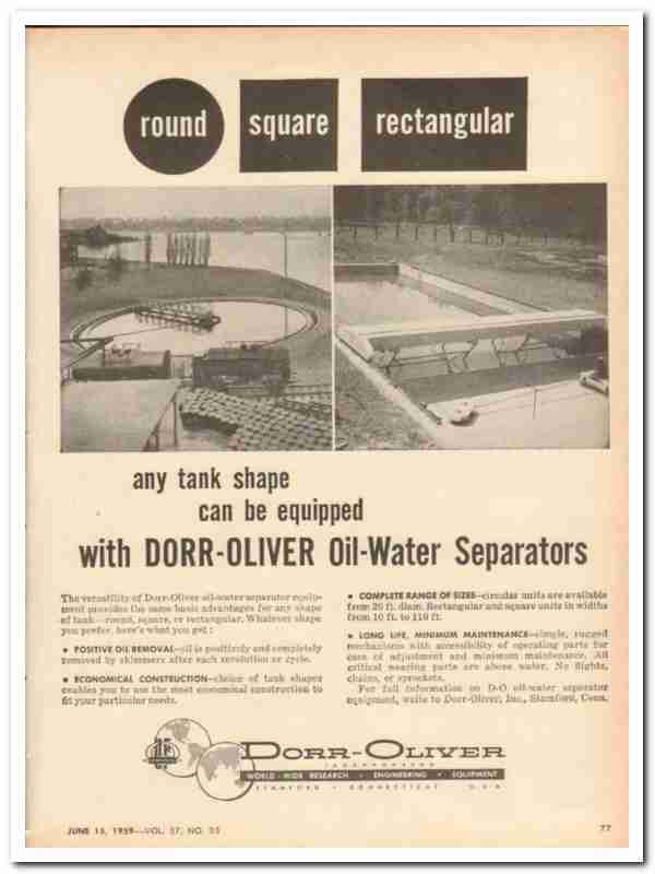Dorr-Oliver Inc 1959 Vintage Ad Oil-Water Separator Round Tank Shape