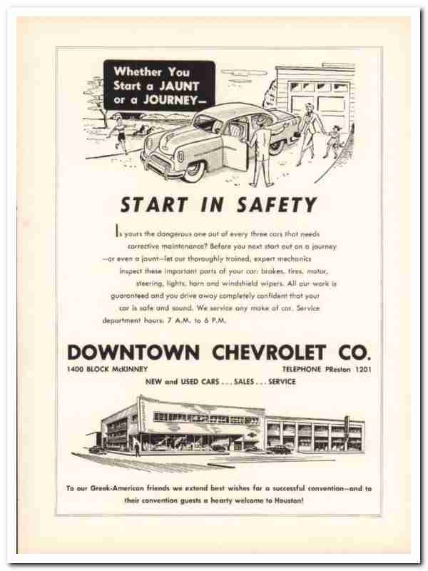downtown chevrolet company 1953 houston tx sales service vintage ad
