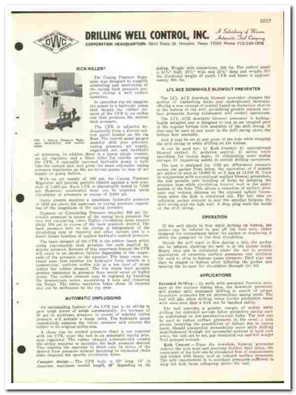 Original 1974 Oil and Gas trade vintage catalog for DRILLING WELL CONTROL, INC. (Subsidiary of Warren Automatic Tool Company). Main office and plant were located at 3915 Tharp Street, Houston, TX. and Lafayette, LA.