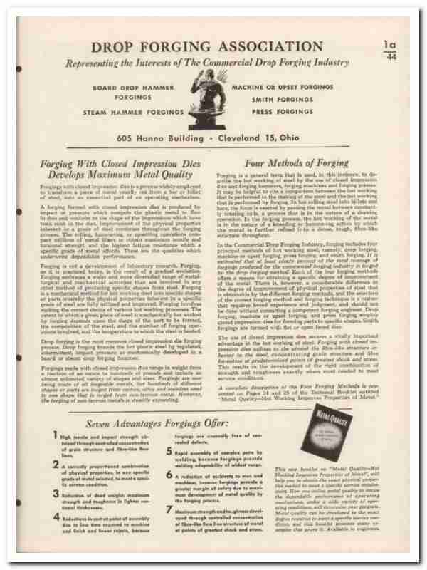 Original metal trade vintage catalog for DROP FORGING ASSOCIATION. Main office was located at 605 Hanna Building, Cleveland, OH.