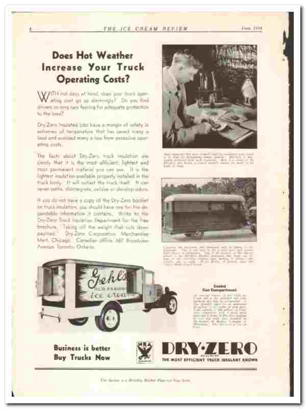 Dry-Zero Corp 1934 vintage truck ad insulation ice cream delivery