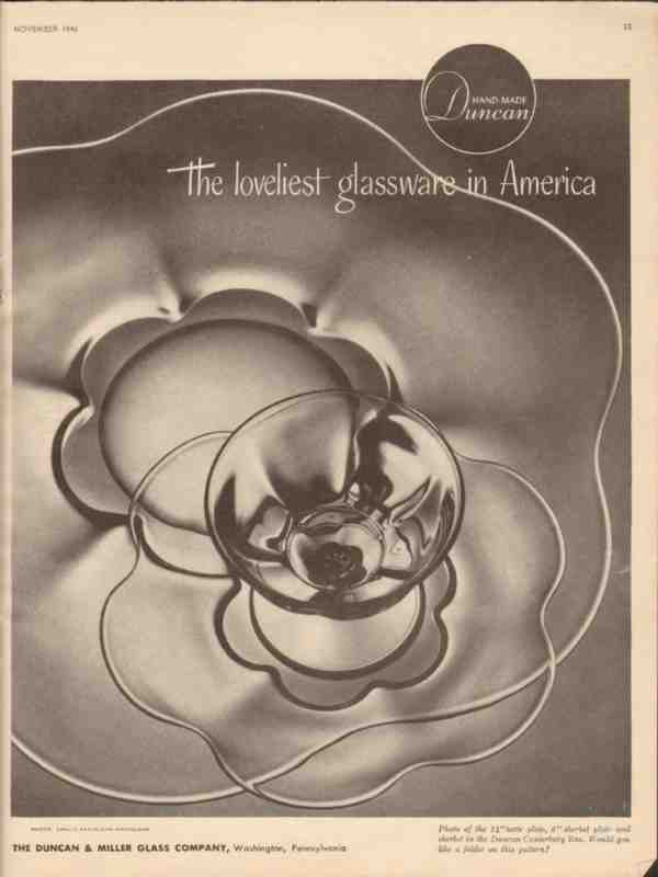 duncan miller glass company 1946 loveliest canterbury vintage ad