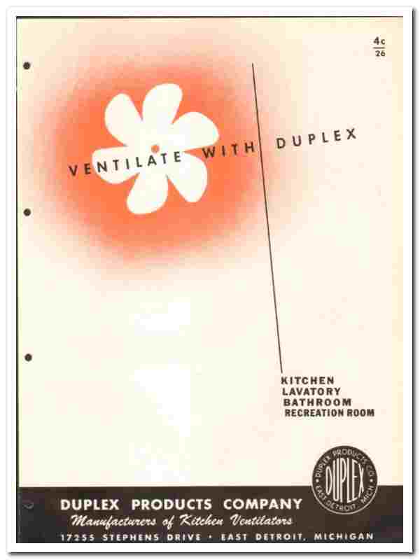 Duplex Products Company 1949 vintage heating catalog ventilation fans
