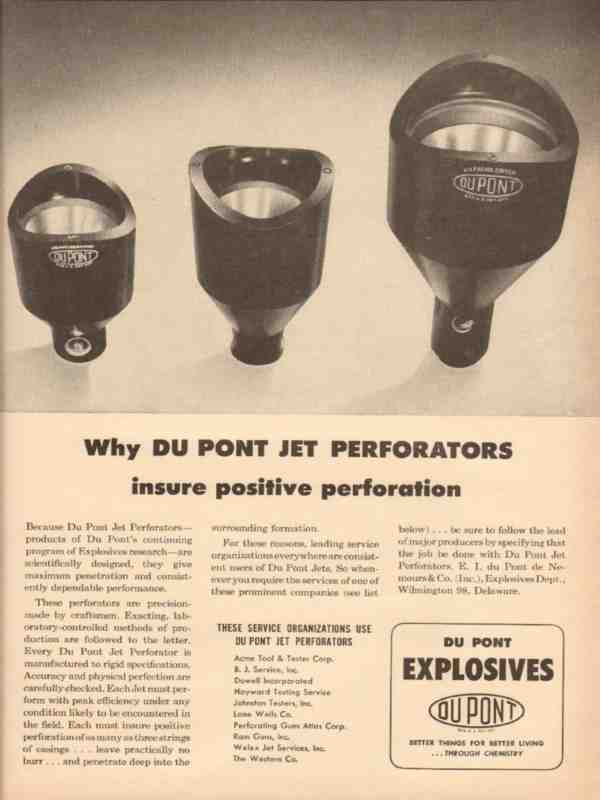 Du Pont 1954 Vintage Ad Oil Field Jet Perforators Positive Explosives
