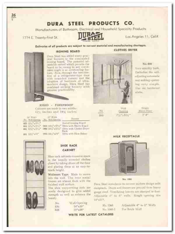 Original 1948 metal trade vintage catalog for the DURA STEEL PRODUCTS COMPANY. Main office and plant was located at 1774 East 21st Street, Los Angeles, CA.