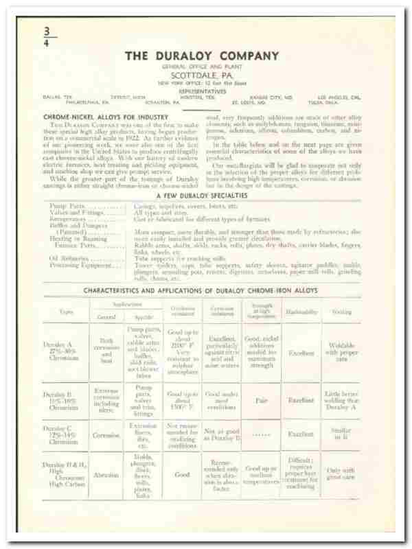 Duraloy Company 1941 vintage metal catalog Chrome-Nickel Alloy