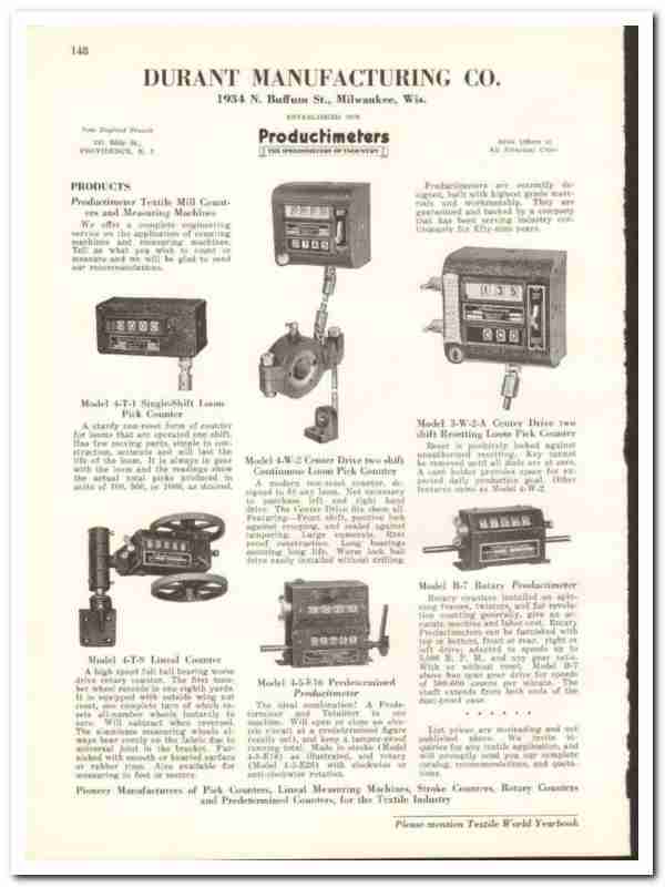 Durant Mfg Company 1938 vintage textile ad Productimeters mill counter