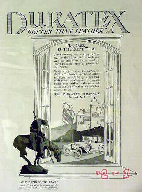 Original vintage magazine automobile ad, THE DURATEX COMPANY of Newark, NJ. Art by Gries. Old 1917 Duratex "BETTER THAN LEATHER" advertisement. Would look sensational matted and framed!