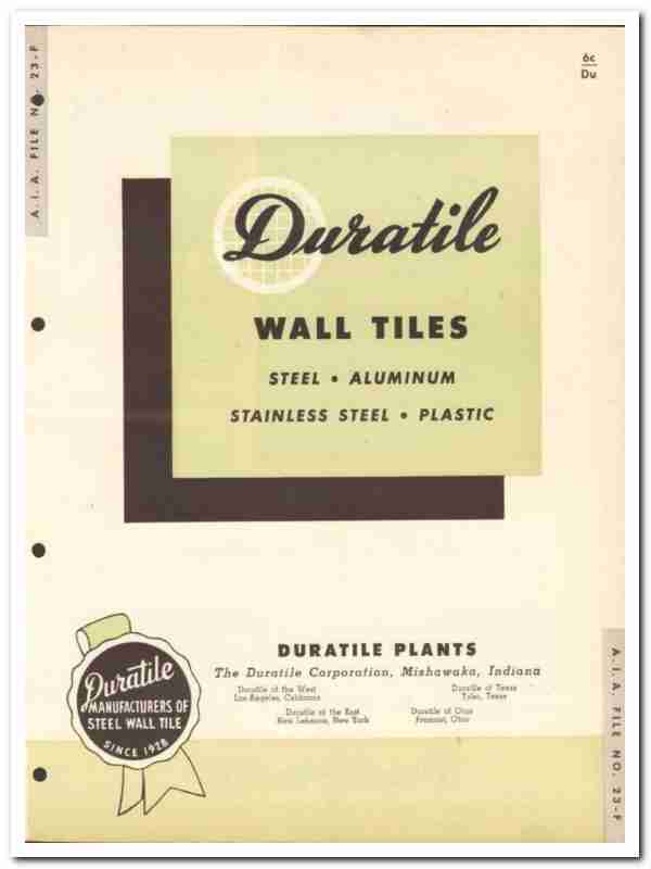 Duratile Corp 1954 Vintage Catalog Tile Wall Steel Aluminum Plastic
