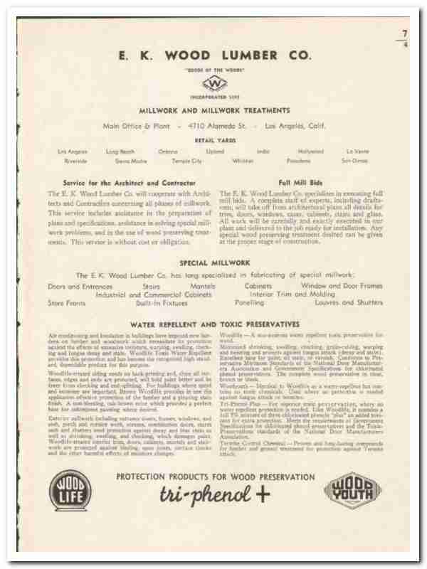 Original 1948 wood trade vintage catalog for the E K WOOD LUMBER COMPANY. Main office and plant was located at 4710 Alameda Street, Los Angeles, CA. (Incorporated 1895).