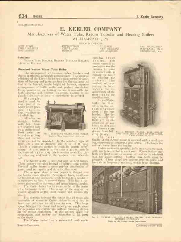 E Keller Company 1916 Vintage Catalog Boiler Water Tube Return Tubular