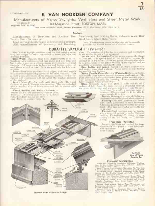 E Van Noorden Company 1938 Vintage Catalog Skylights Duratite Vanco
