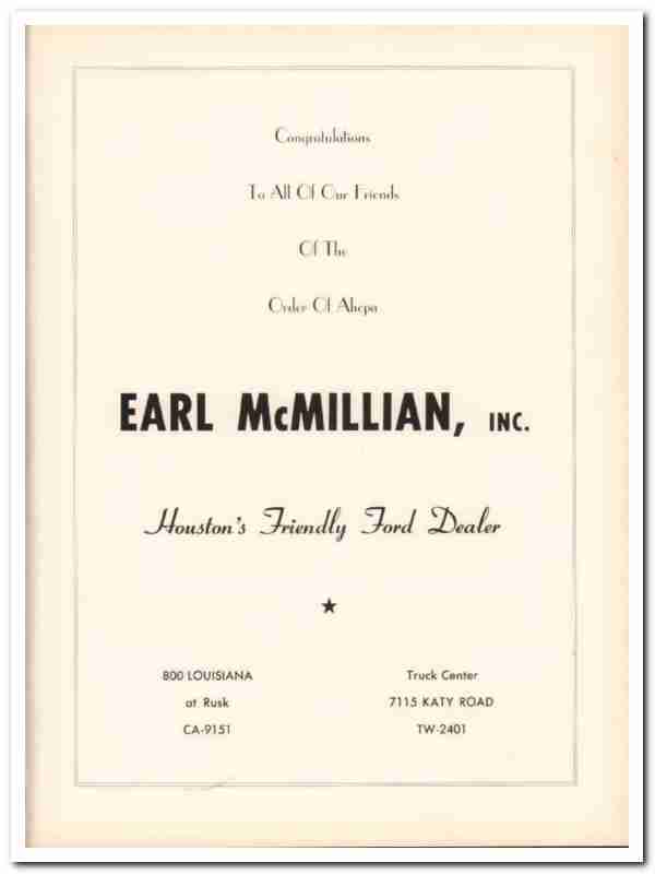 Original 1953 Greek-American business trade magazine vintage ad for EARL McMILLIAN, INC. Was located at 800 Louisiana at Rusk Streets, in Houston, Texas. Truck Center was located at 7115 Katy Road, Houston, Texas. Congratulations To All Our Friends Of The Order Of Ahepa.