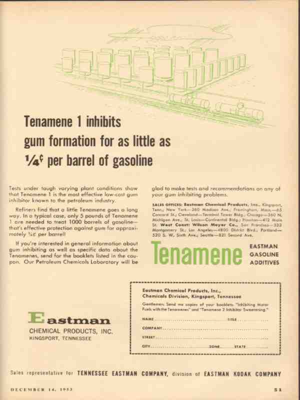 eastman chemical products 1953 tenamene-1 inhibits gum form vintage ad
