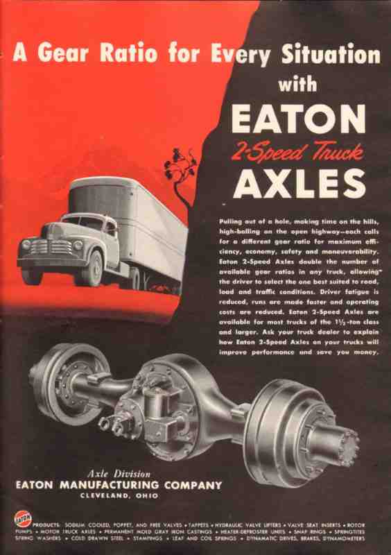 eaton mfg company 1950 gear ratio 2-speed truck axles vintage ad