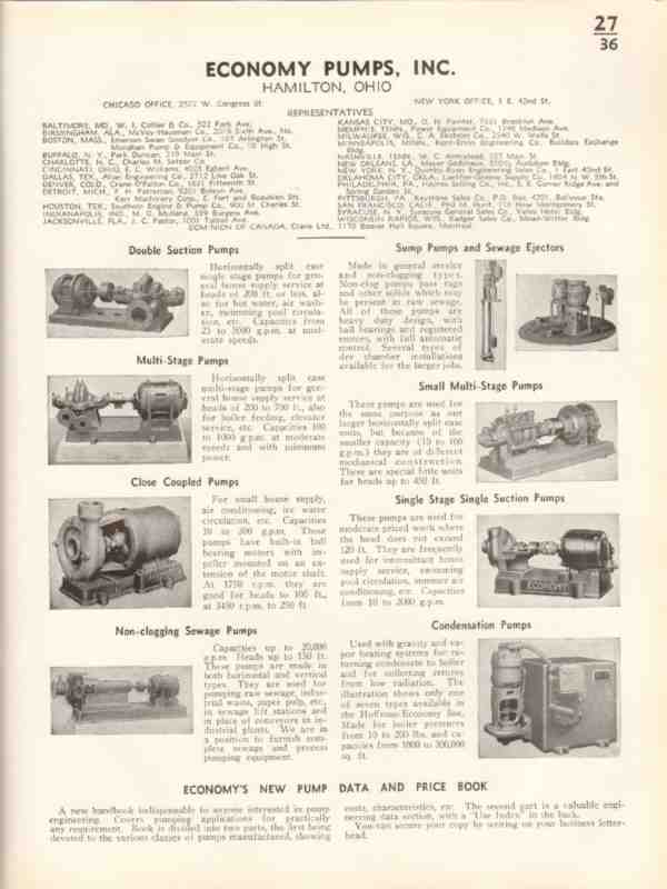 Economy Pumps Inc 1941 vintage industrial catalog centrifugal sump