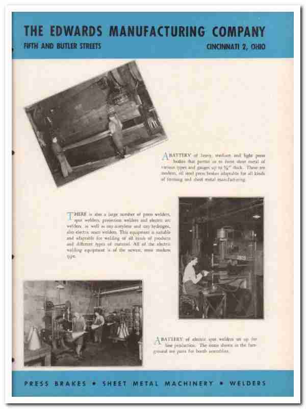 Edwards Mfg Company 1945 vintage metal catalog press brakes welders