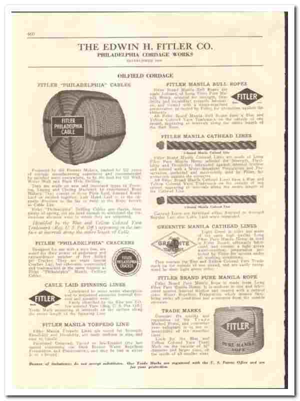 Original 1936 Oil and Gas trade vintage catalog for the EDWIN H. FITLER COMPANY. (Philadelphia Cordage Works). Main office and plant were located in Philadelphia, PA. (Established 1804).