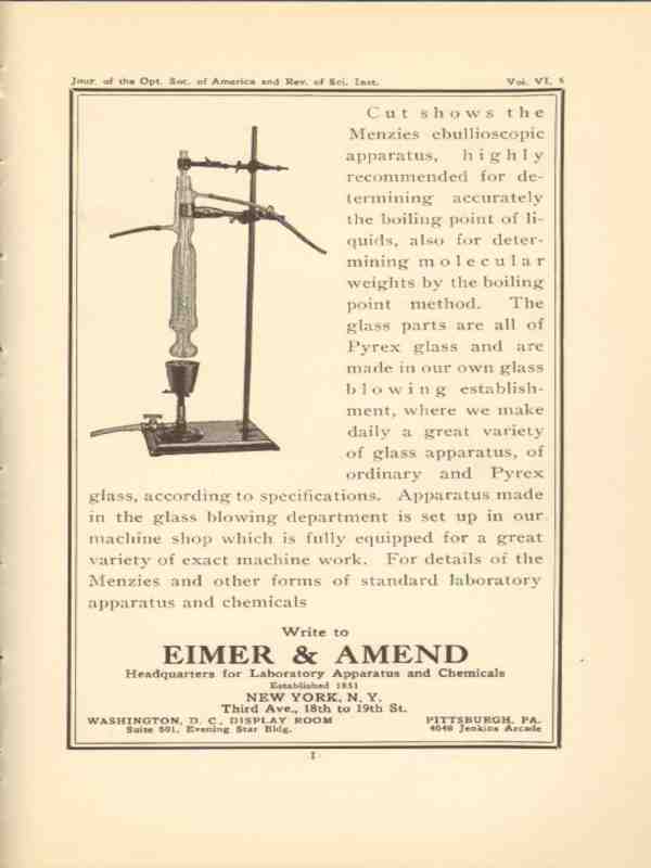 eimer and amend 1922 menzies ebullioscopic apparatus vintage ad