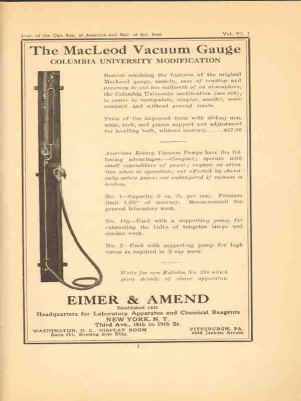 eimer and amend 1922 the macleod vacuum gauge vintage ad