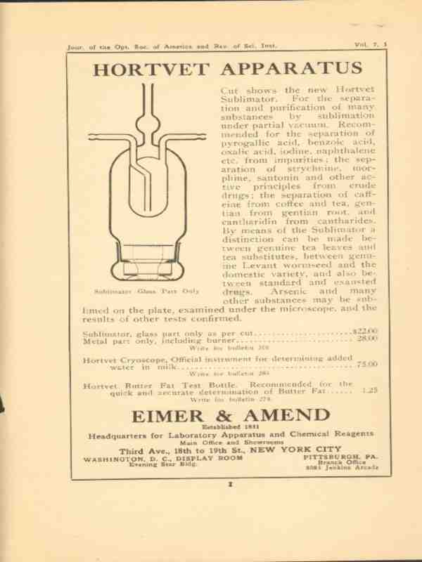 Eimer Amend 1923 Hortvet Sublimator separation apparatus vintage ad