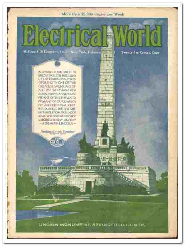 Electrical World 1921 vintage magazine cover Sangamo Lincoln Monument