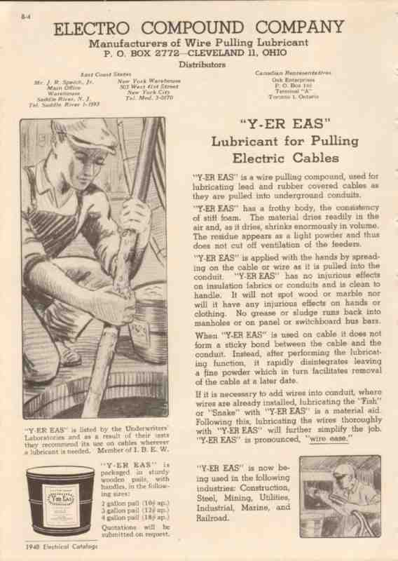Electro Compound Company 1948 Vintage Catalog Cable Lubricant Y-ER EAS