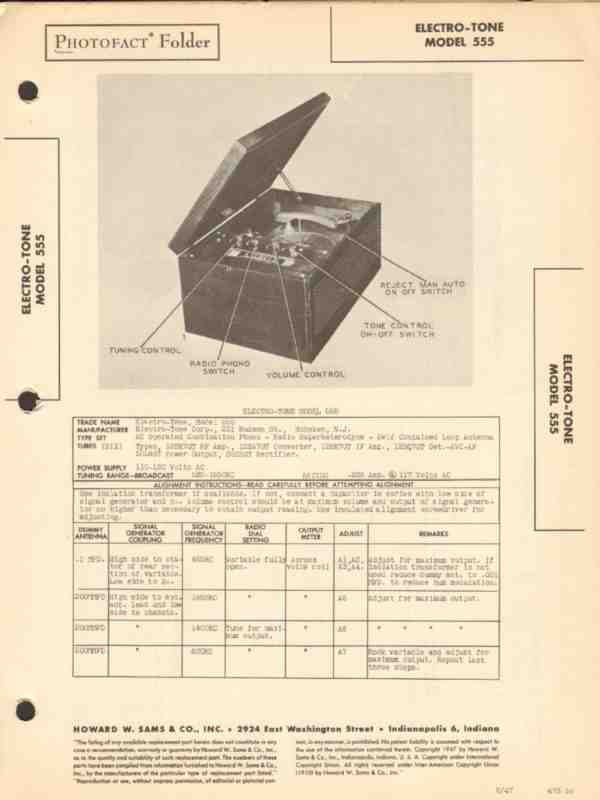 electro-tone model 555 am radio receiver phono sams photofact manual