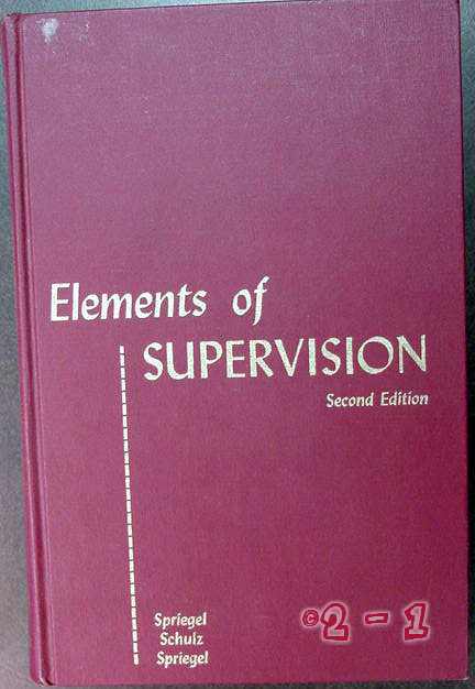 Hard covered book titled Elements of SUPERVISION Second Edition, by William Spriegel, Ph.D., Edward Schulz, Ph.B., and William Spriegel, M.D., 1966, 349 pages, high quality paper, maroon cloth bound.
