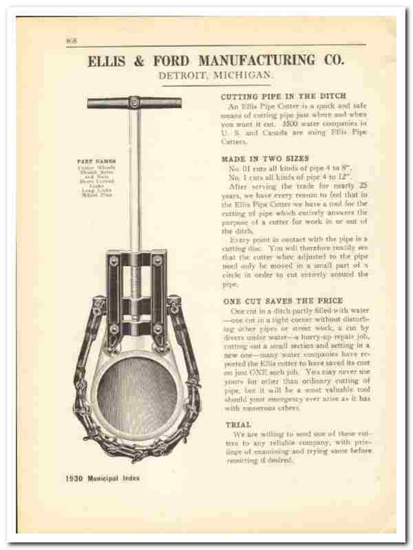 Ellis Ford Mfg Company 1941 vintage municipal catalog pipe cutter