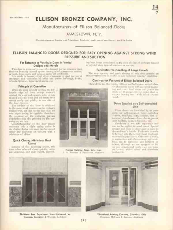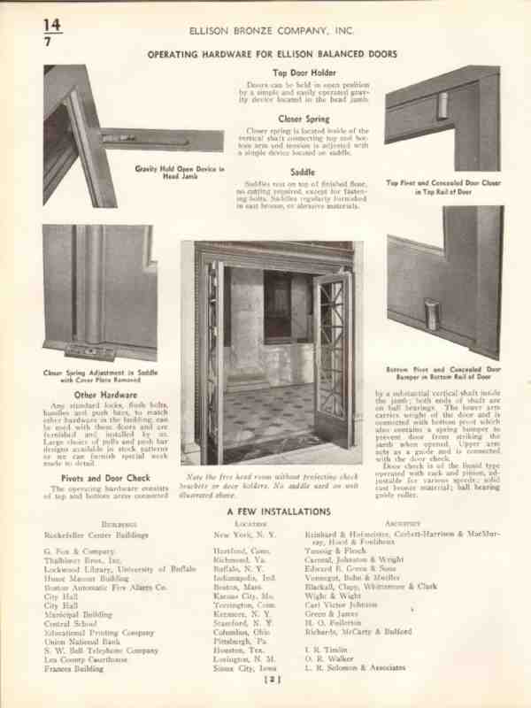 Ellison Bronze Company 1938 Vintage Catalog Doors Balanced Easy Open