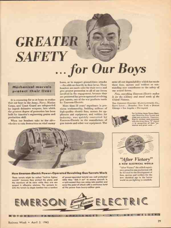 emerson electric mfg company 1943 greater safety our boys vintage ad