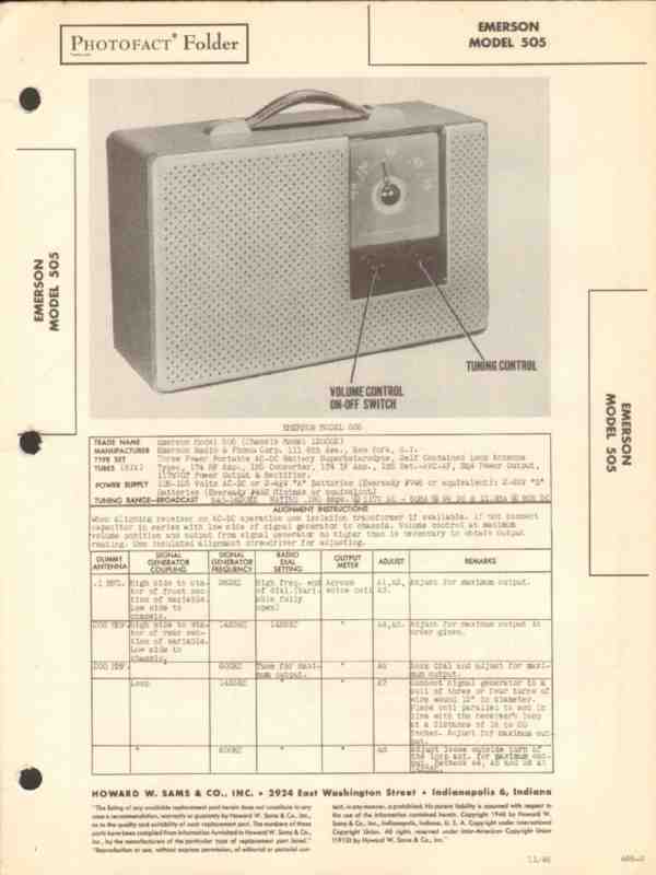 emerson model 505 6 tube am radio receiver sams photofact manual