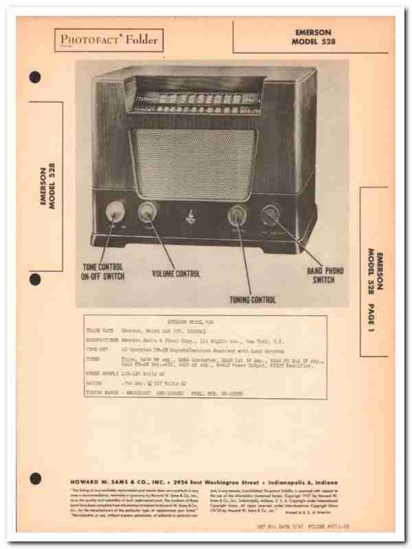 emerson model 528 8-tube am-fm radio receiver sams photofact manual