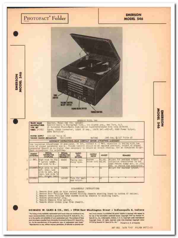 emerson model 546 5-tube am radio phonograph sams photofact manual
