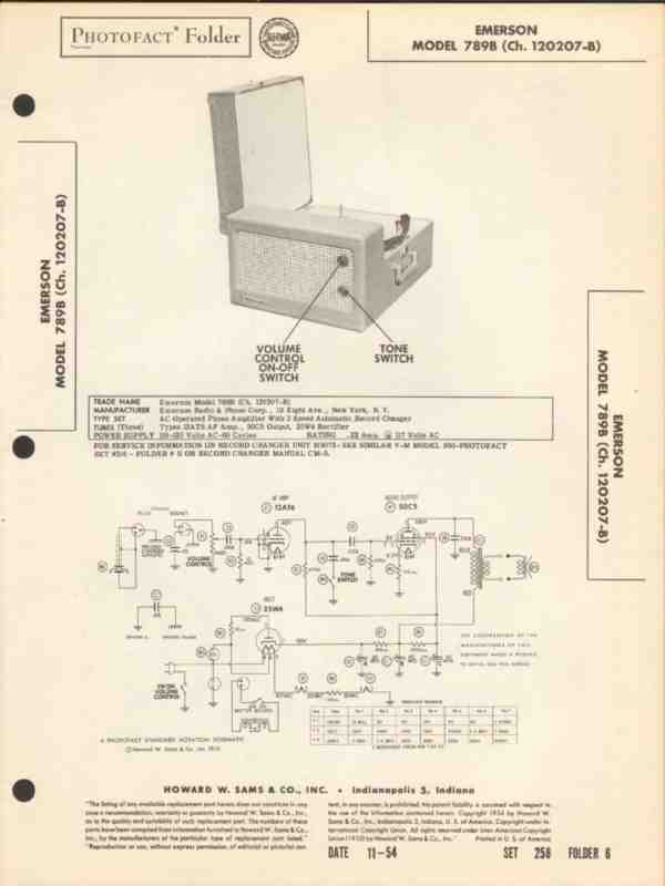 emerson model 789b 3-speed record changer sams photofact manual