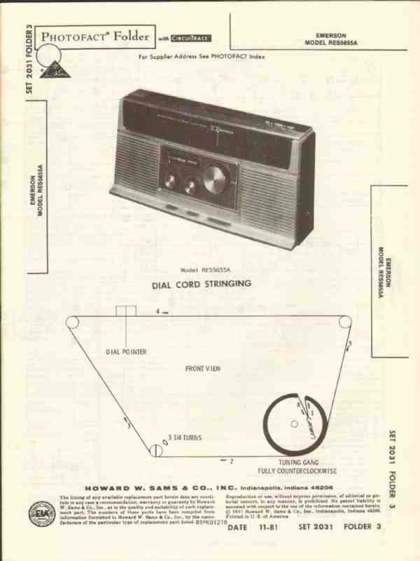 emerson model res5655a am fm stereo clock radio sams photofact manual