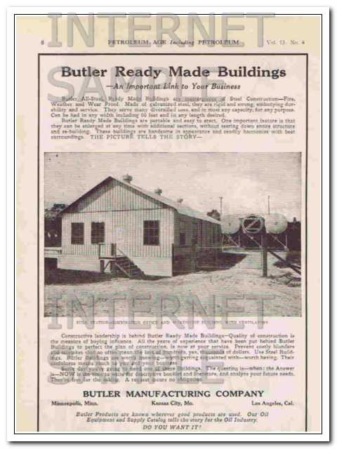 On the reverse side (see Additional Images tab) is BUTLER MANUFACTURING COMPANY of Minneapolis, MI. Butler Ready Made Buildings.