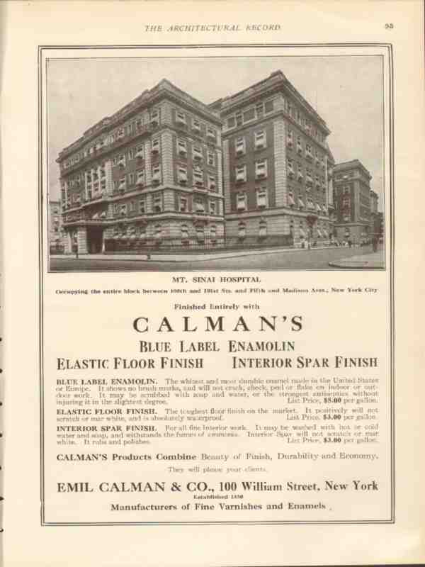 emil calman company 1912 mt sinai hospital nyc floor finish vintage ad