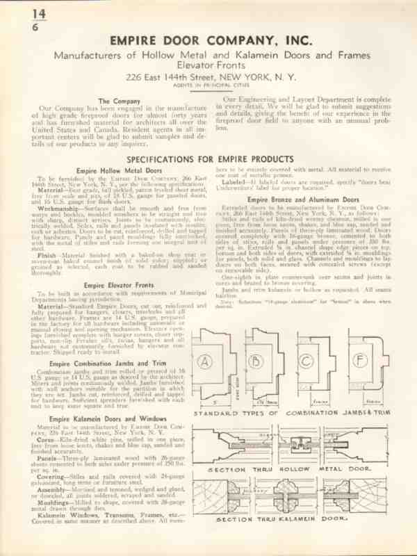 Empire Door Company 1938 Vintage Catalog Hollow Metal Kalamein