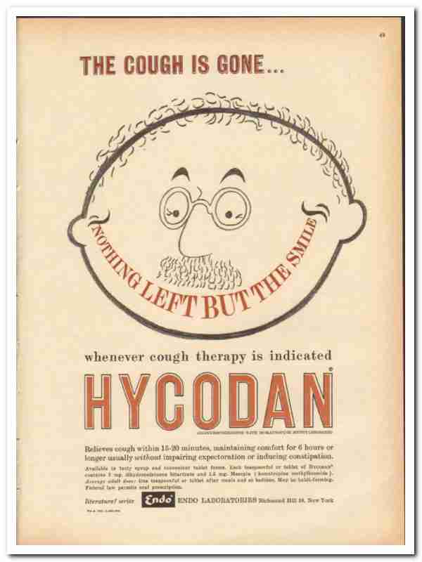 Endo Laboratories 1959 medical vintage ad Hycodan cough grandfather