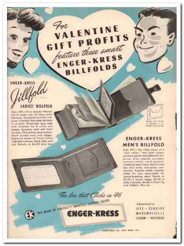 Enger-Kress Company 1946 Vintage Ad Leather Goods Billfolds Valentine