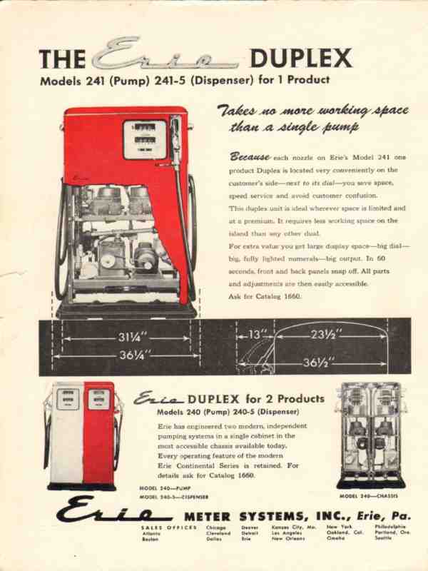 erie meter systems inc 1957 duplex 241 pump 241-5 dispenser vintage ad