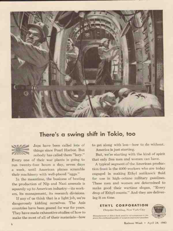 ethyl corporation 1943 theres swing shift in tokio too ww2 vintage ad