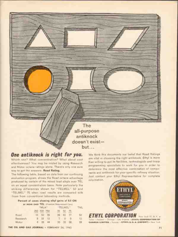 ethyl corporation 1962 telmel antiknock right octane road vintage ad