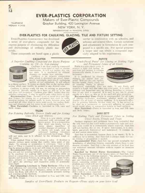 Ever-Plastics Corp 1938 Vintage Catalog Caulking Glazing Compounds